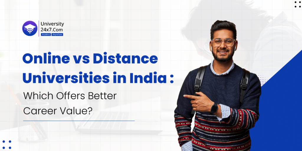 The Online vs Distance education sector in India has undergone a tremendous transformation, providing students with flexible options to learn in a manner that is not possible in a classroom setting. Currently, the two most sought-after alternatives are Online vs Distance Universities Learning (Open and Distance Learning – ODL) Universities.Though both alternatives are regulated by the University Grants Commission (UGC), students are often confused about which one of them offers more career advantages.